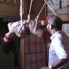 天井逆さ吊りにして一本鞭で鞭打ち!