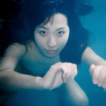 透明なボウルに水を入れて息をこらえていている表情を捉えた映像です。