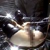 “悪魔憑きの猥褻男”はヌルヌルになった油まみれの手を洗面所に洗いにいったようです…女はテーブルの上に縛られて放置されたまま…。